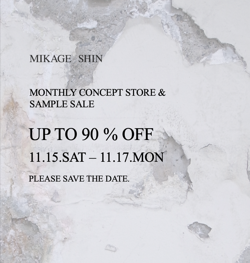 11月15日(土)から11月17日(日)まで、MONTHLY CONCEPT STOREの11月ストアとSAMPLE SALEを東京・渋谷で開催いたします。最大で90% OFFになるスペシャルな機会となっております。