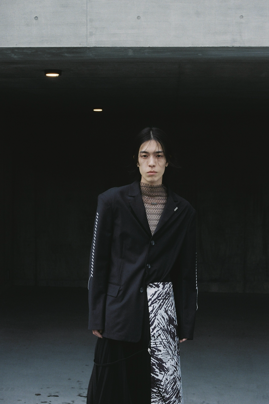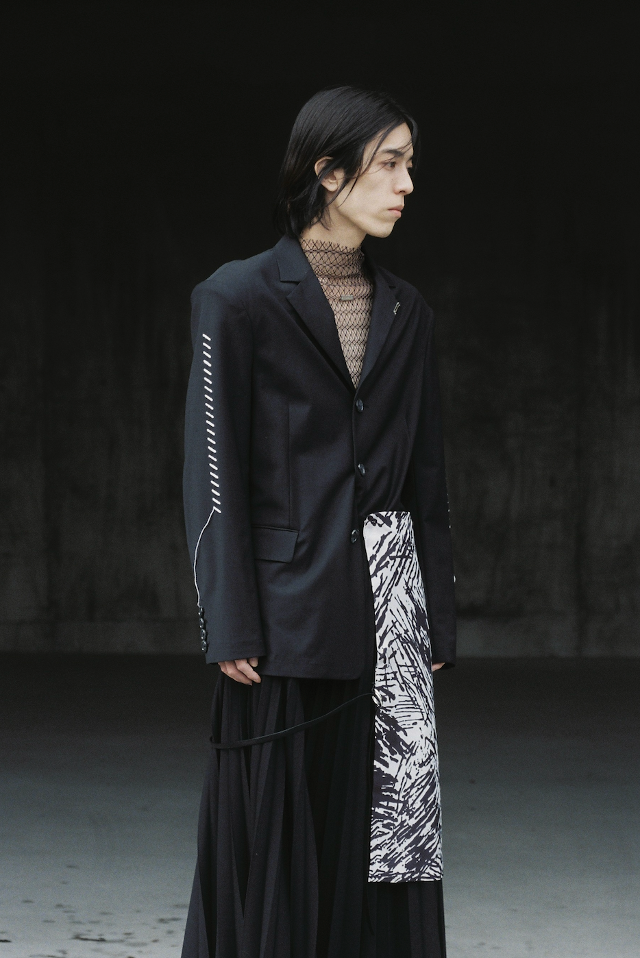 布地のベースにはウール混の生地を使用し、テーラードジャケットともセットアップで合わせられる素材です。