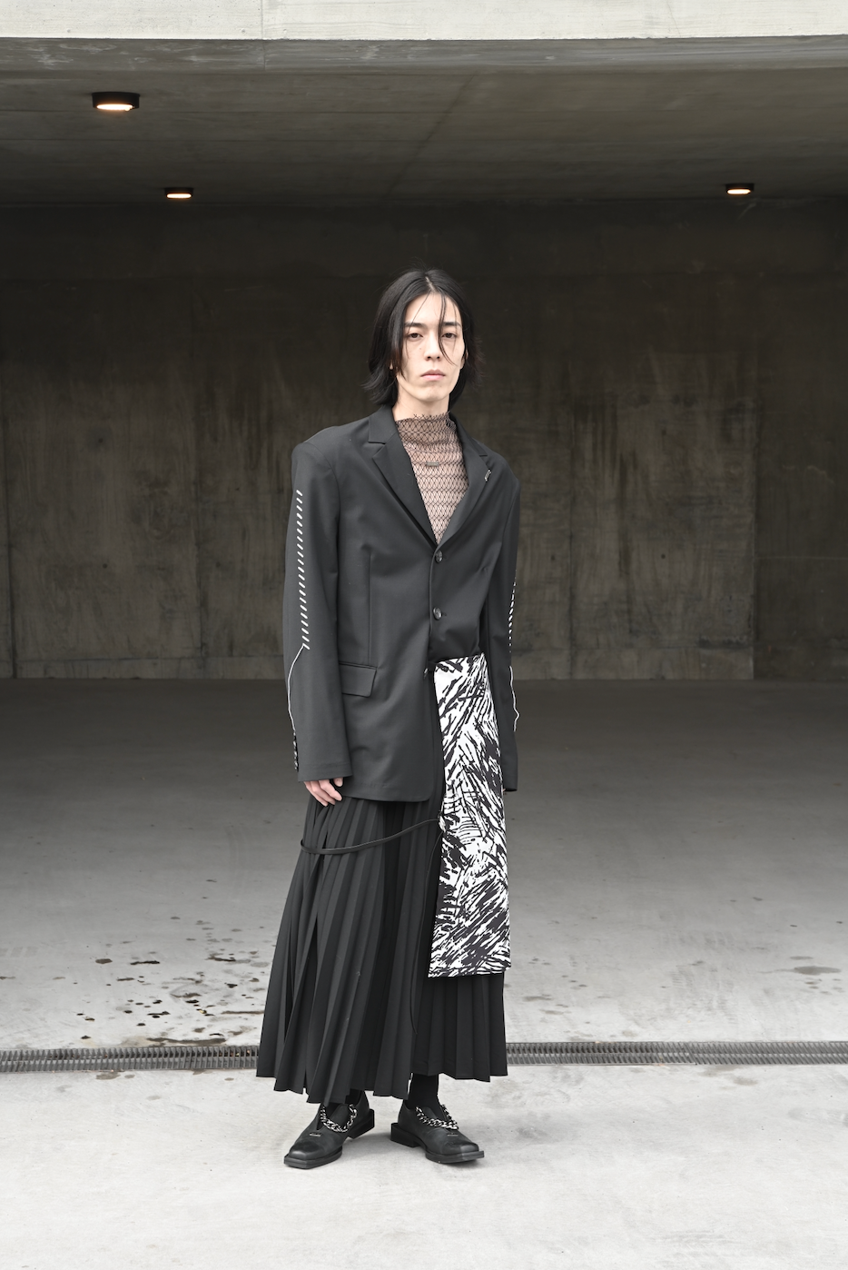 過去アーカイブを再解釈した、レイヤー付きのプリーツスカートです。