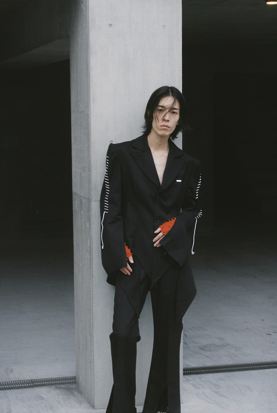 袖には、国内の刺繍職人の方とオリジナルで開発したステッチ調の刺繍を施しています。ジャケットでもシンプルになりすぎないよう、MIKAGE SHINらしい繊細かつハードなディティールをプラスしつつ、オールシーズンであらゆるスタイリングに合わせやすいデザインです。