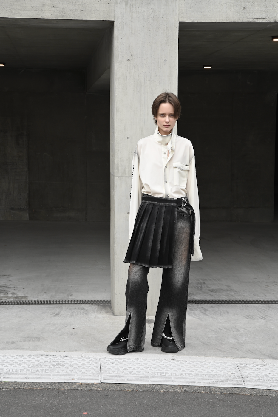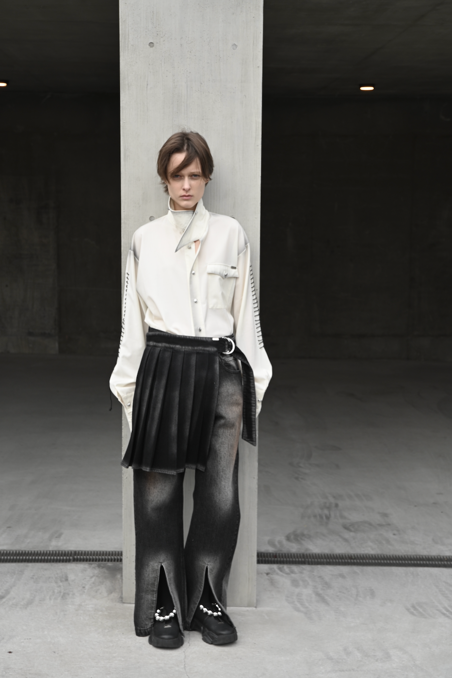 一見シンプルながらディティールには細かなギミックが詰まっており、1着で様々なスタイリングを楽しめる1枚です。