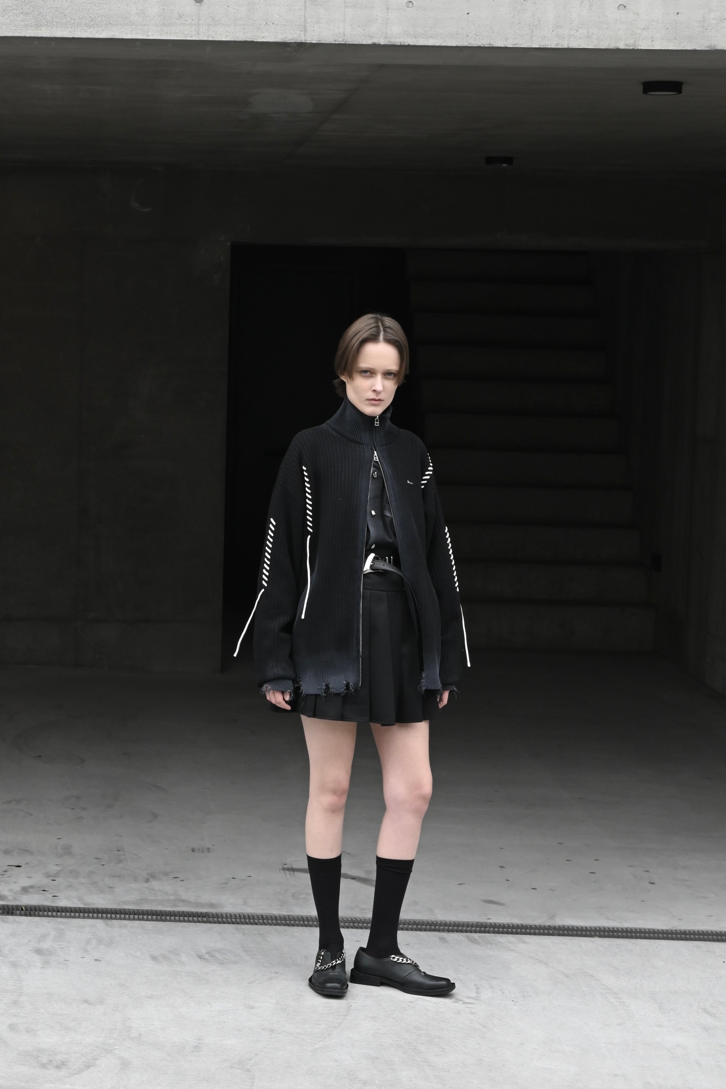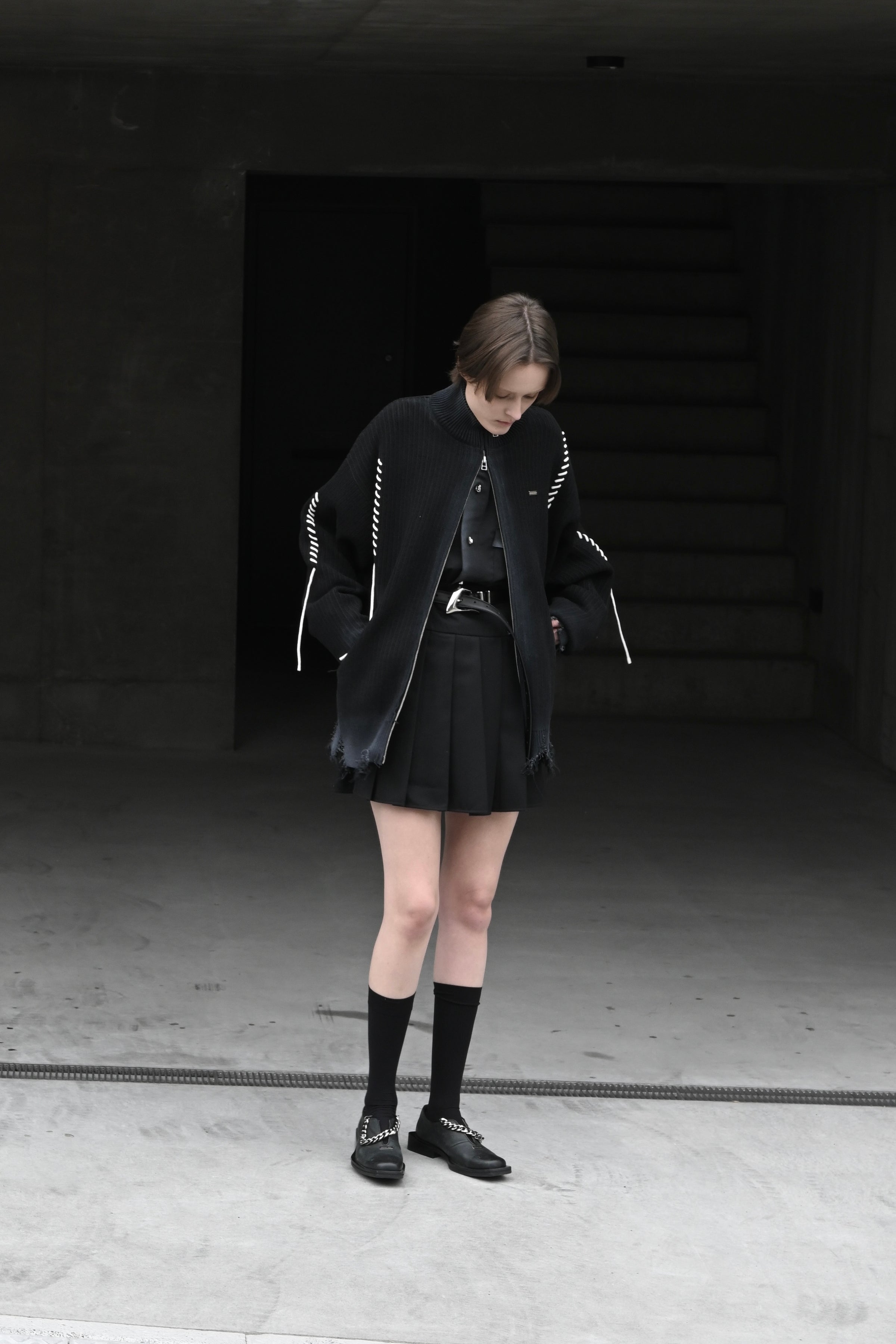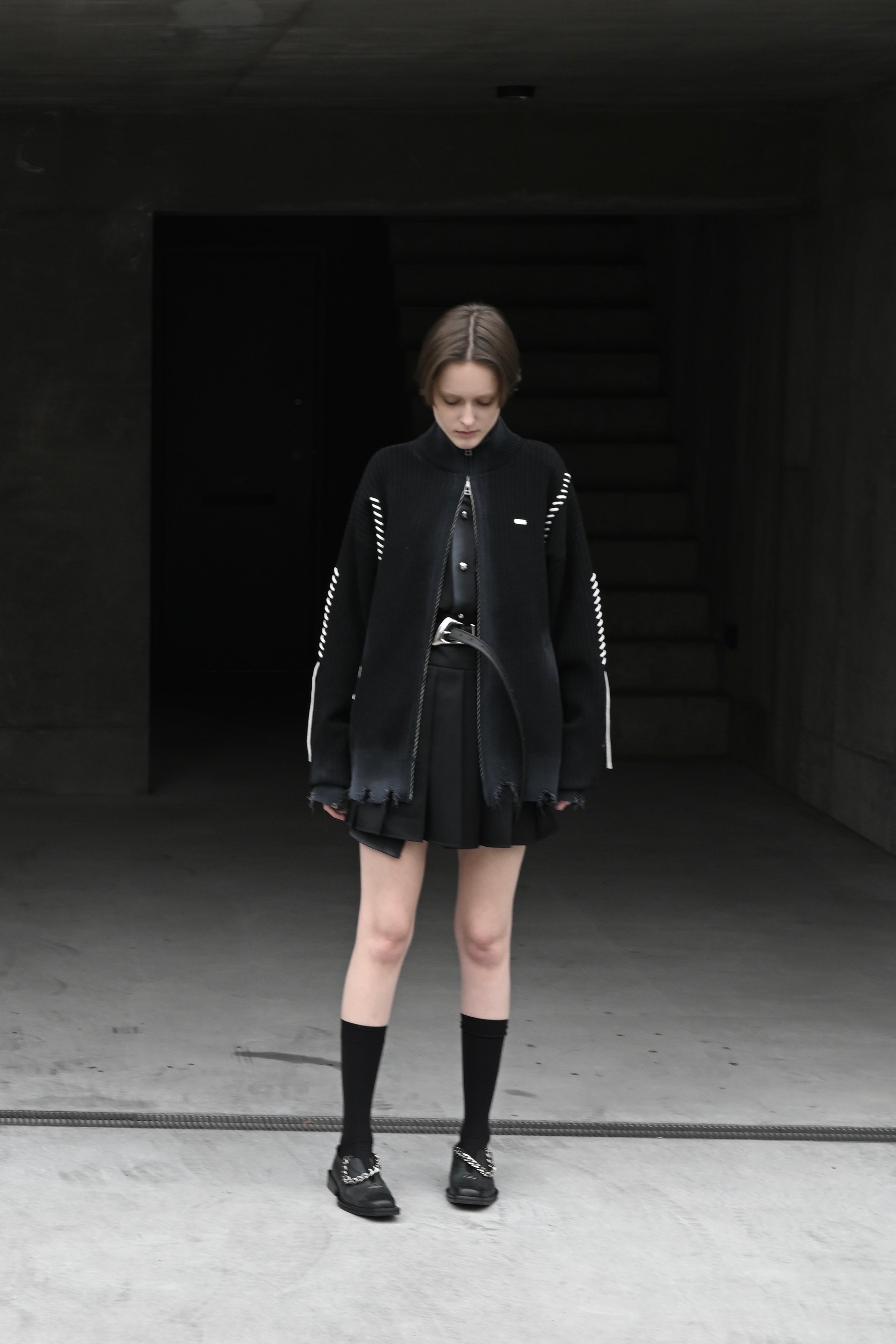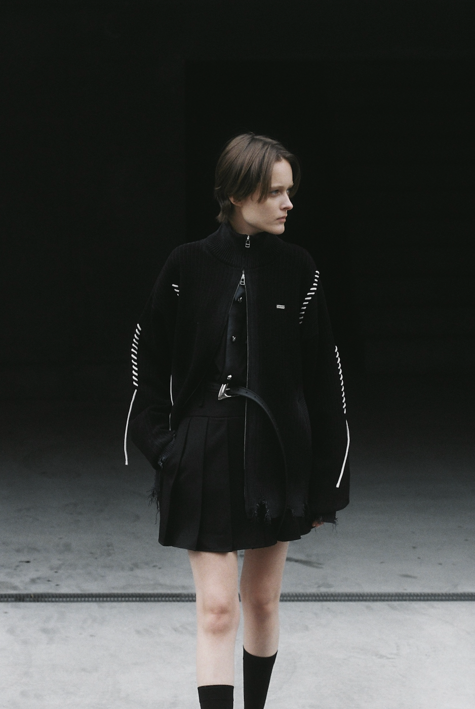 ディティールには、レースアップのディティールと陰影加工を施し、1枚で着ても奥行きが出る風合いのある仕立てです。