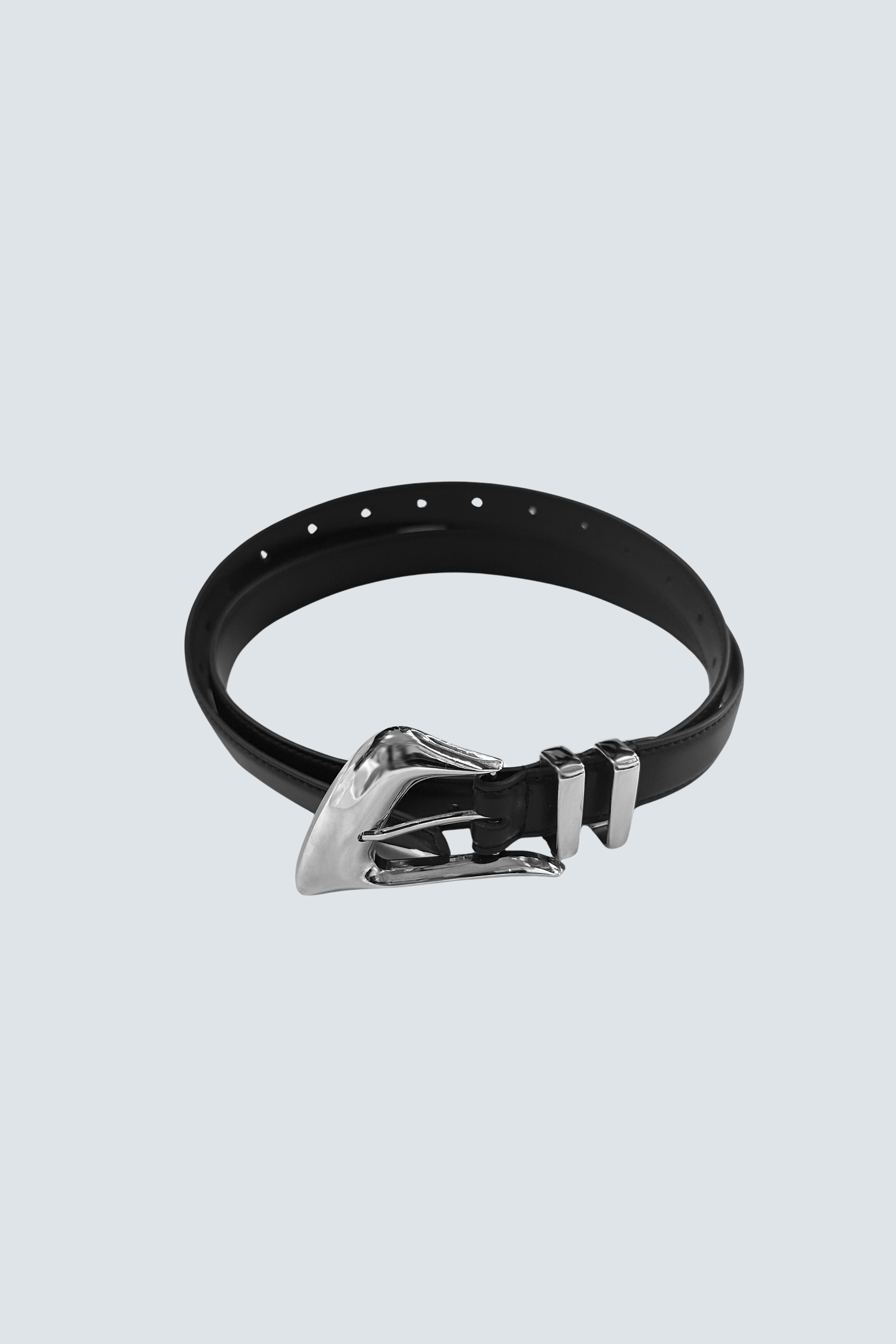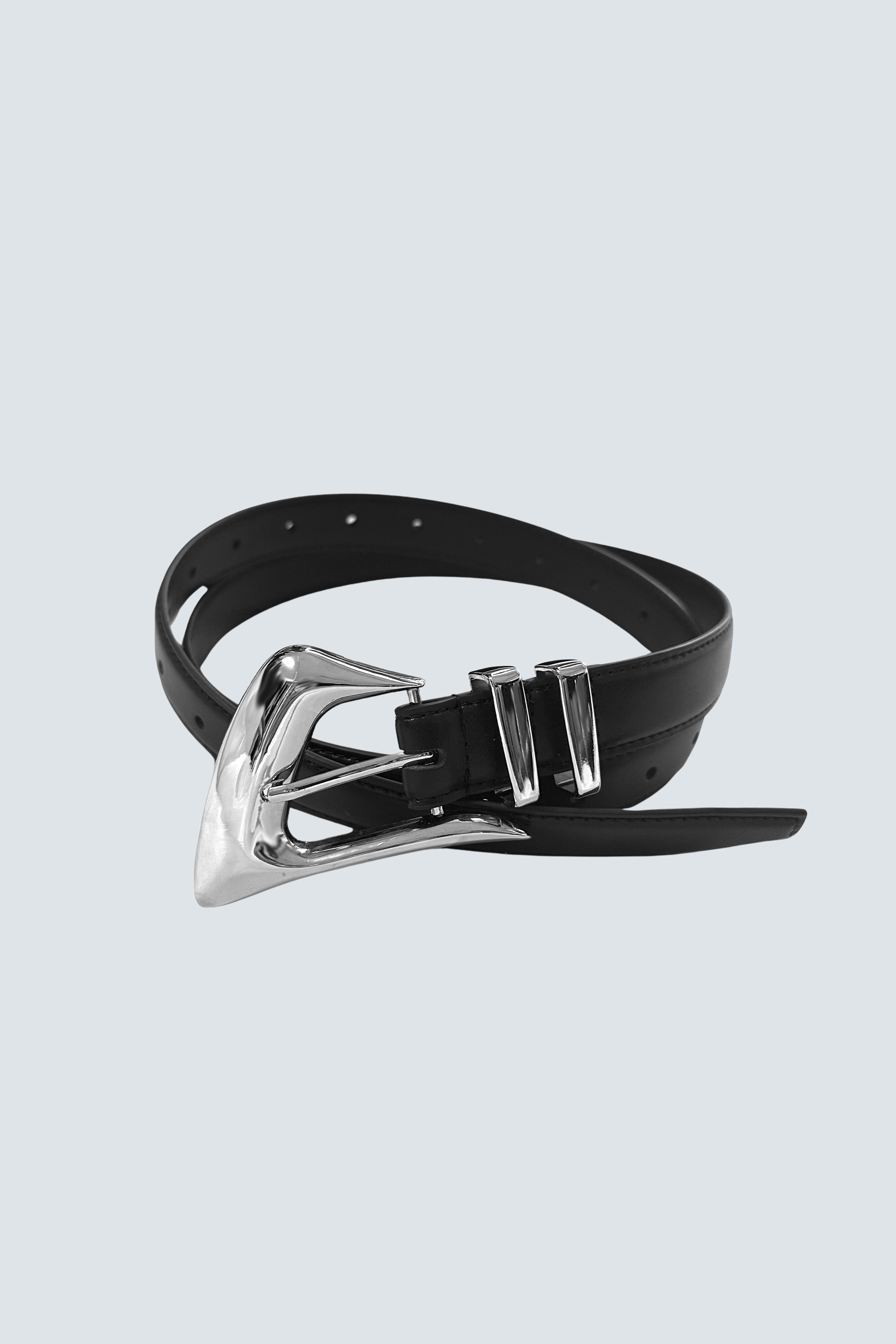 エッジの効いたユニークなシルバーバックルやパーツで、モードで存在感がありつつも、あらゆるスタイリングに合わせやすいデザインです。