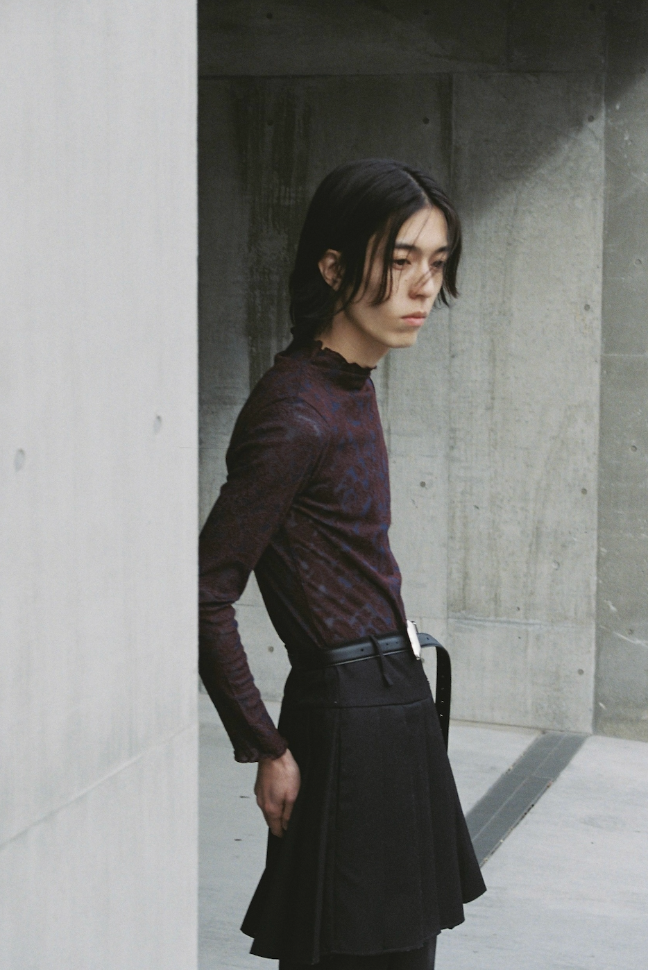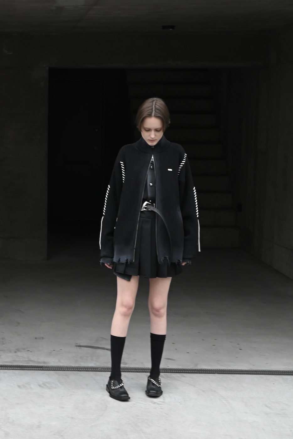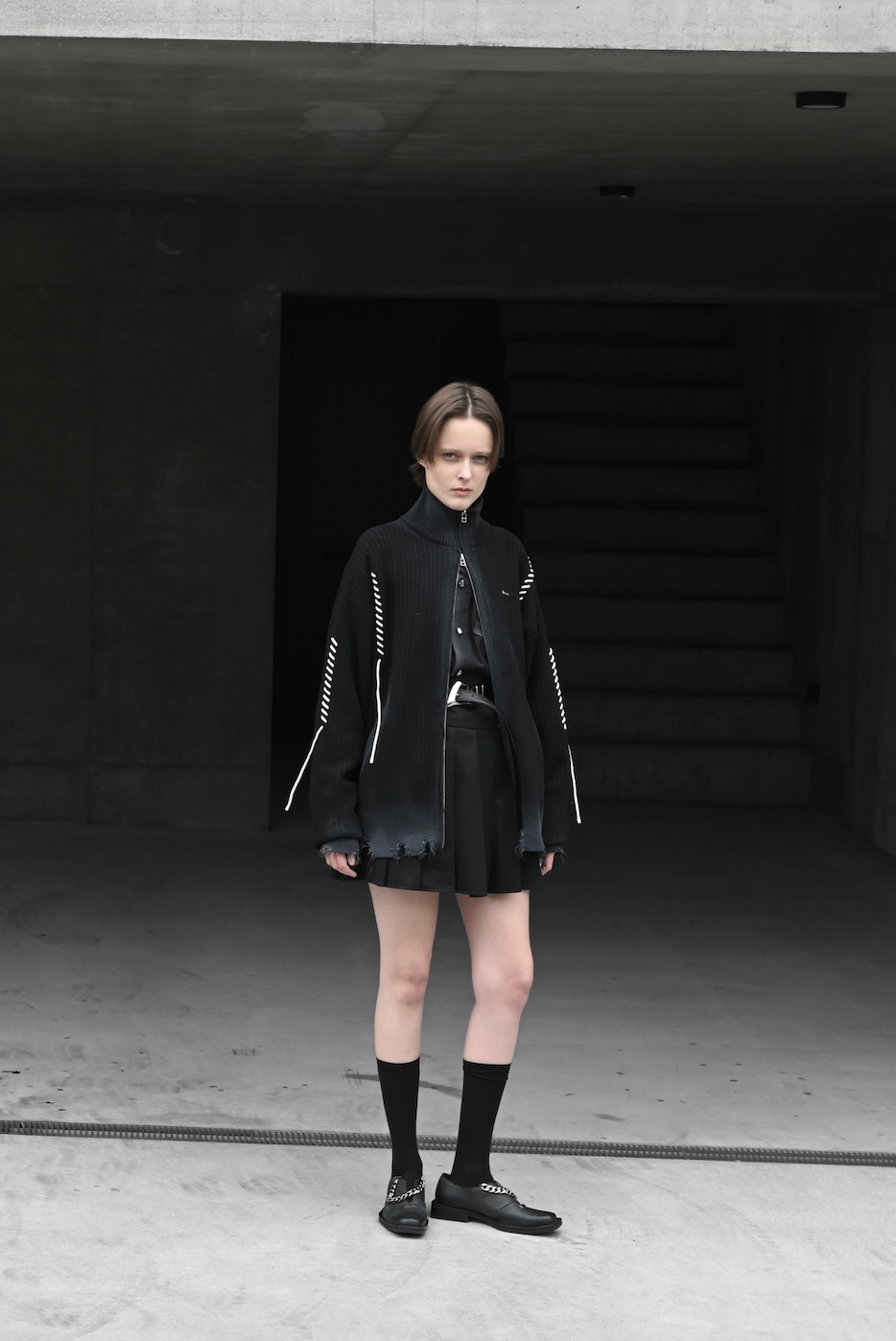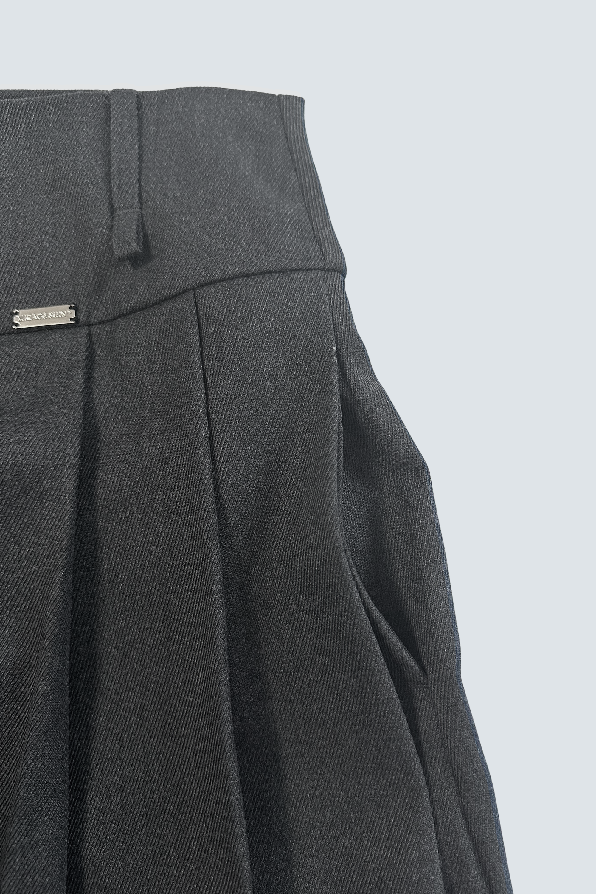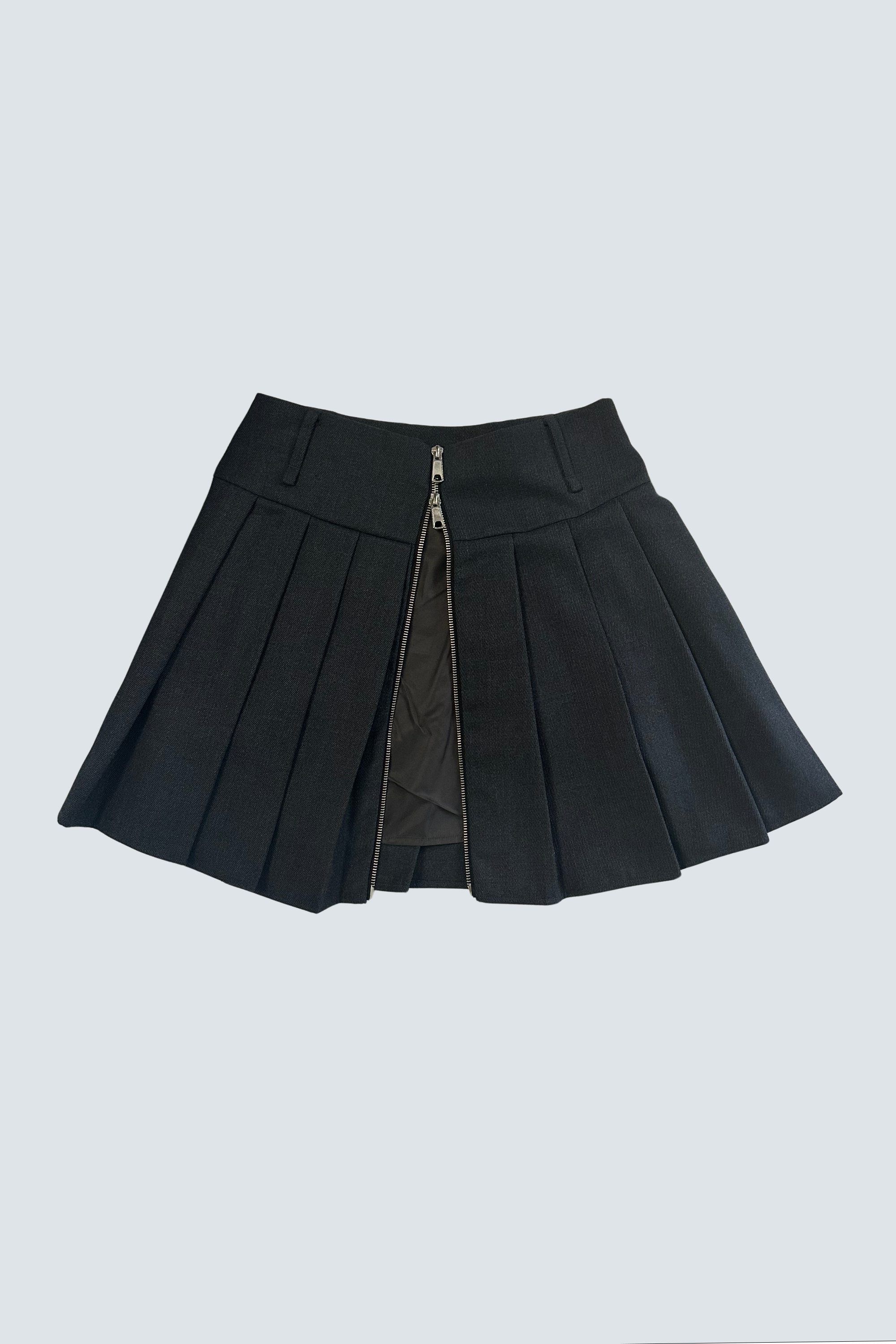 ダブルファスナーがついているため、パンツにレイヤードしたり単体で着用したりと、様々なスタイリングに合わせられます。ファスナーの開け方で、スリット入りスカートのようにご着用いただくことも可能です。