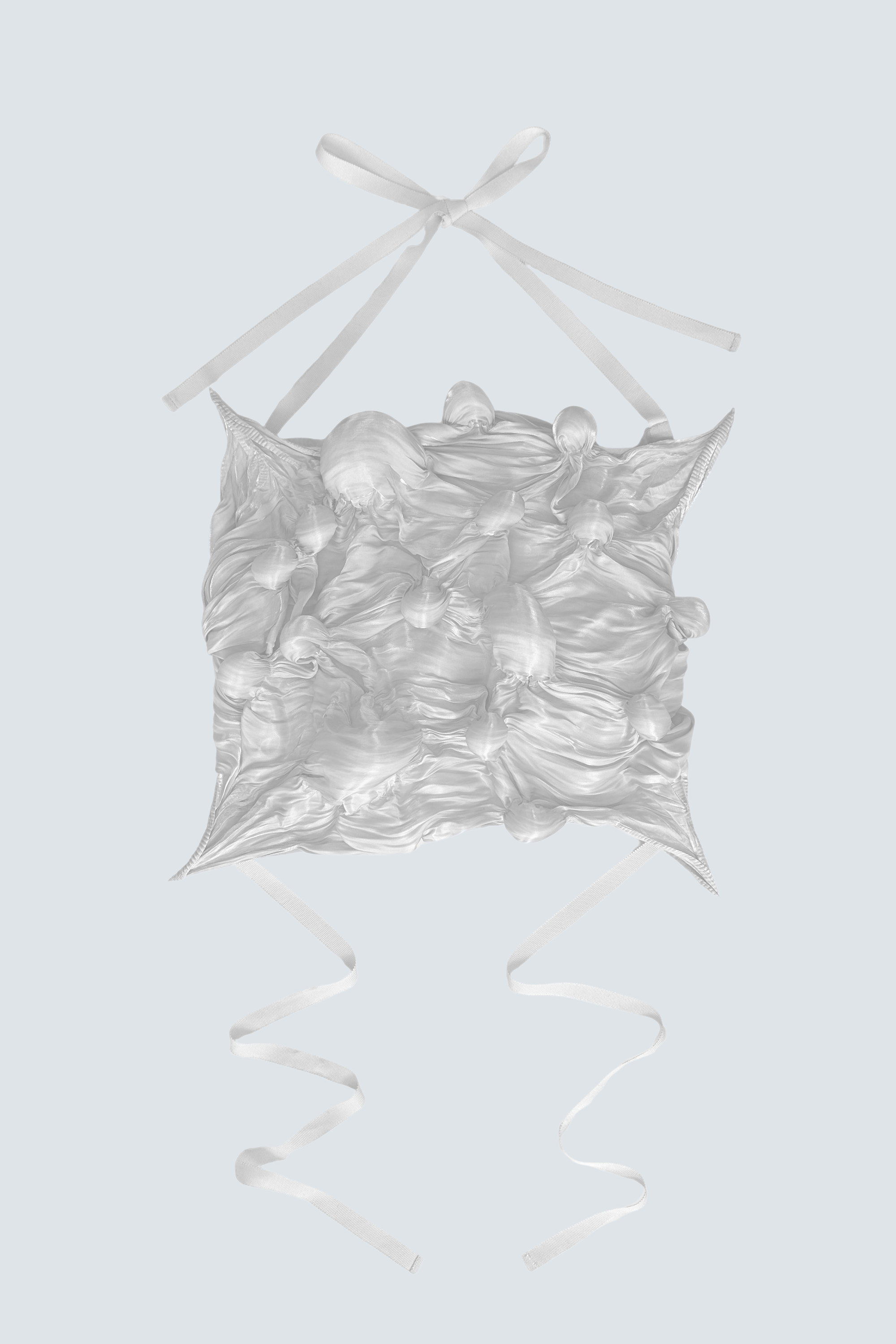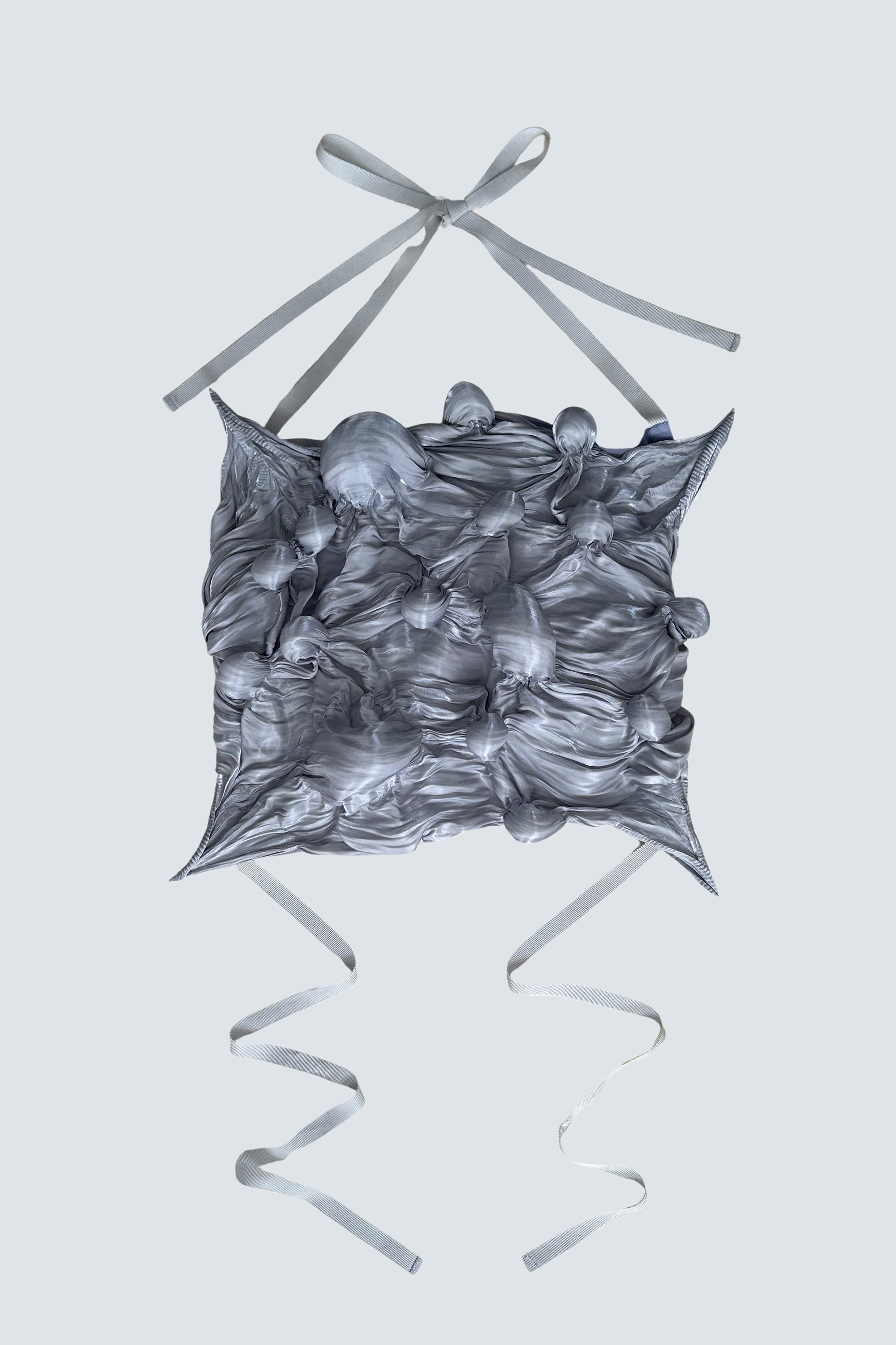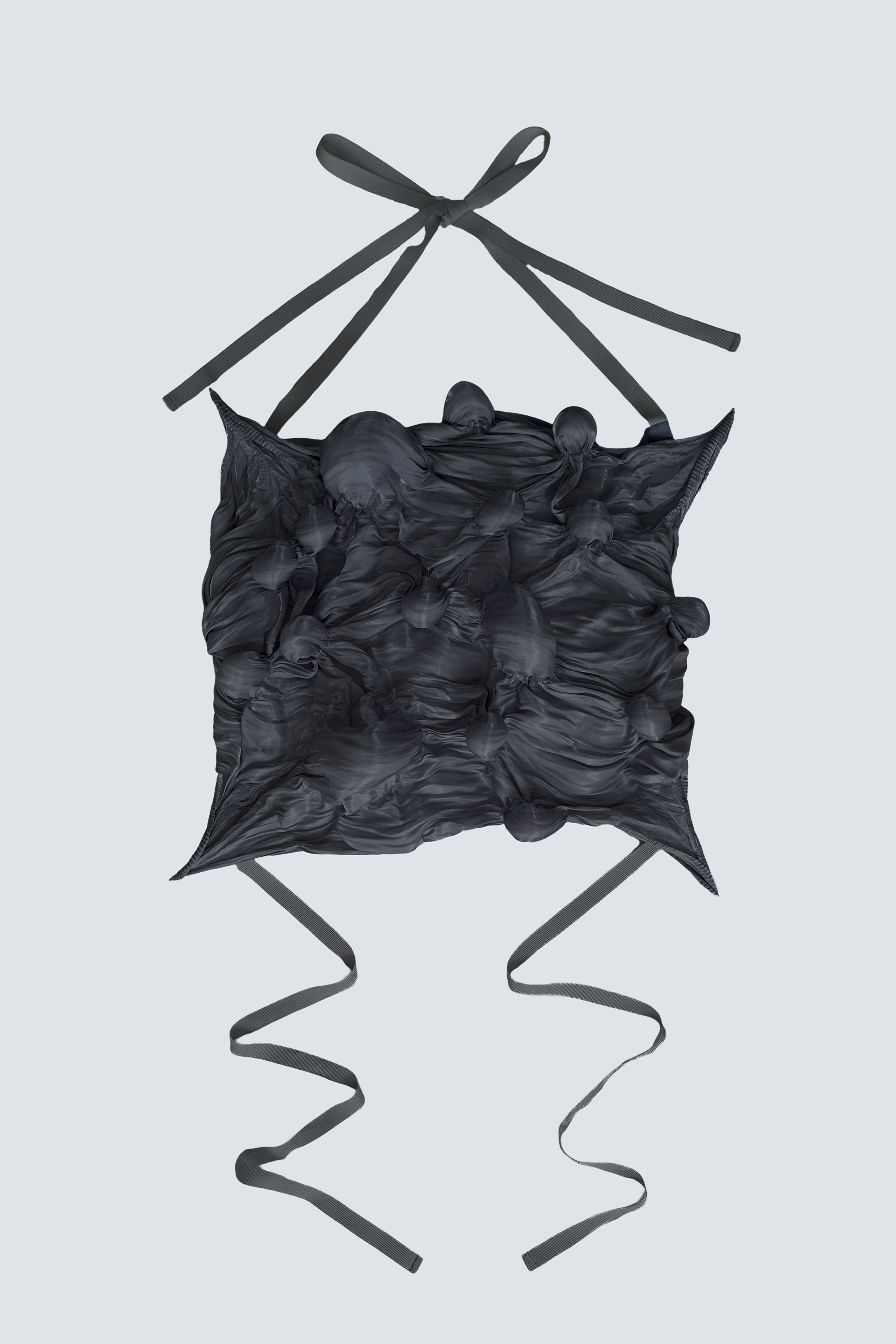 愛知県の伝統工芸である有松絞りを施した、エプロンタイプのビスチェです。
